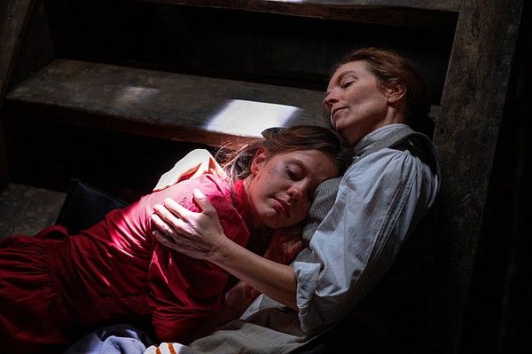 Growing up on the farm, Pearl always envisioned herself as a unique, special, and beautiful girl surrounded by the mendacity that the farm nourishes – shared by her conservative mother Ruth and her father (Matthew Sunderland) in failing health at the hands of influenza. Pearl sees herself much like the caged canary imprisoned in the family’s living room, singing wildly and performatively with nowhere to go. She imagines a fate for herself that includes dancing in the Follies on the big screen. Secretly, Pearl seizes upon the opportunity to see a motion picture in town when charged with getting the medication that will treat her ailing father, and as Pearl prepares to ride her bike to town that day, Ruth reminds her to wear her mask in the company of others. But when Pearl arrives in town, she remains one of the only people unmasked, a foreshadowing of the significance of the masks, not just as protection against the flu but as a means of disguising one’s true nature.